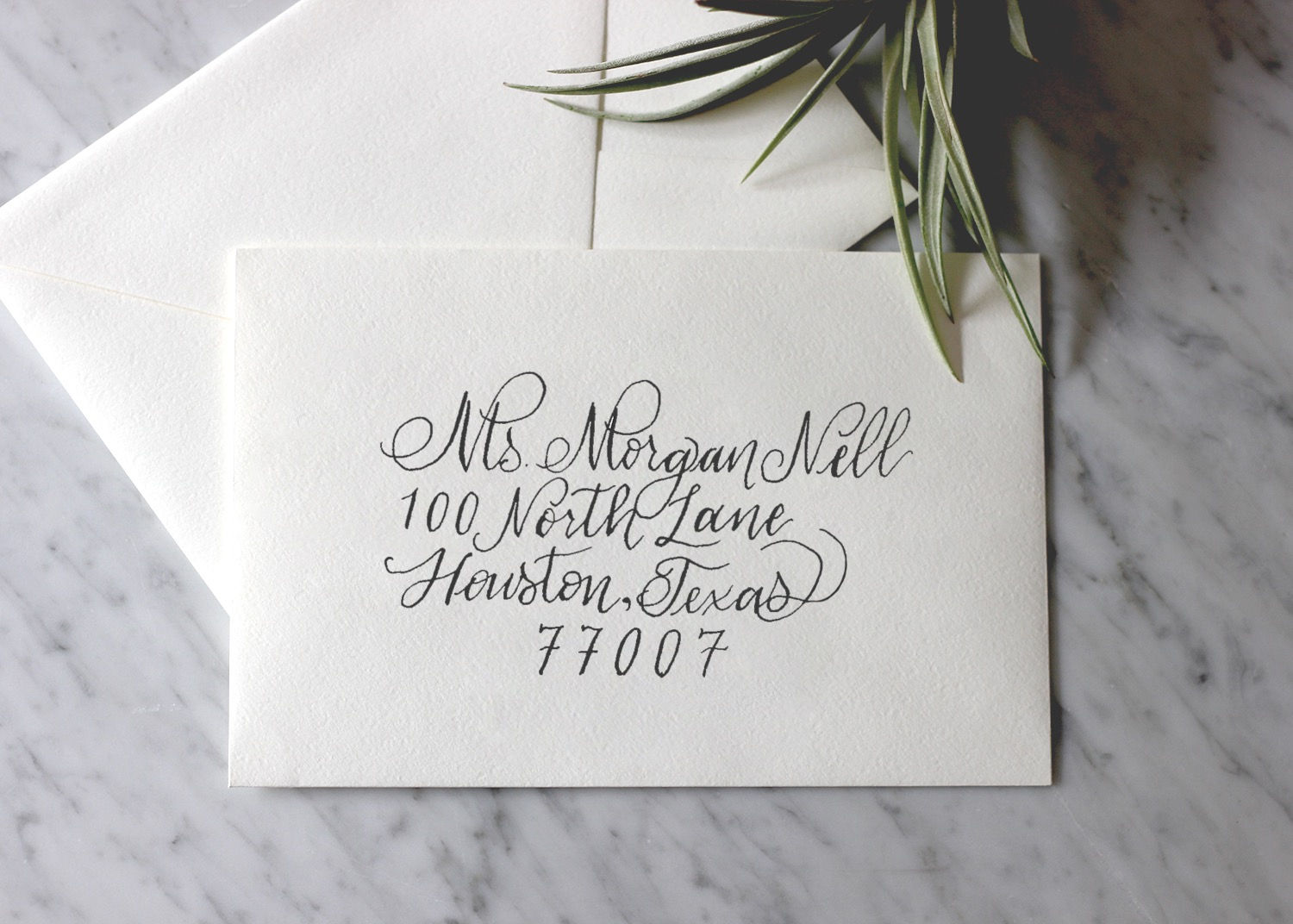 Each envelope is hand lettered by me using a calligraphy pen selected based on the font preference.