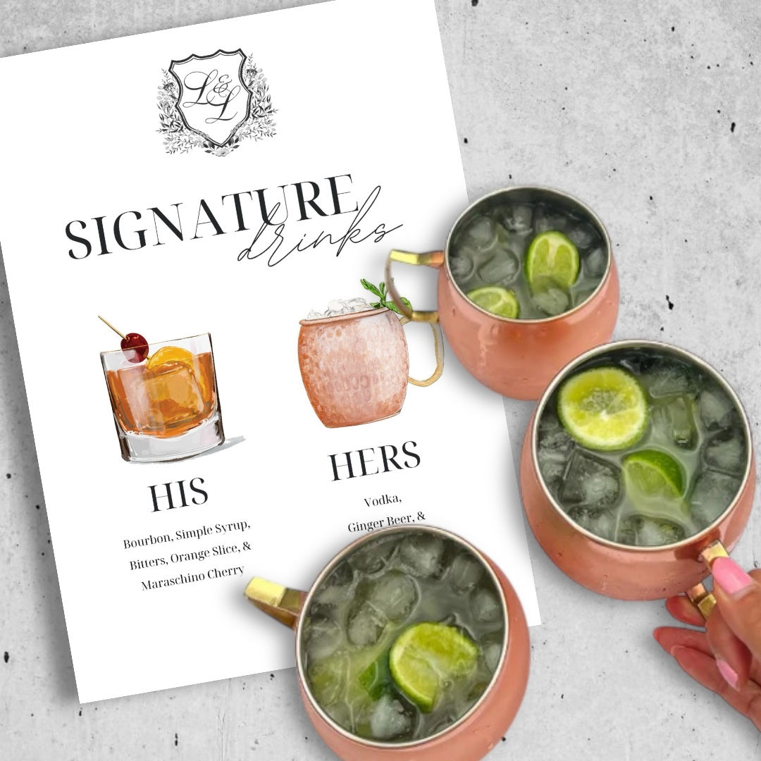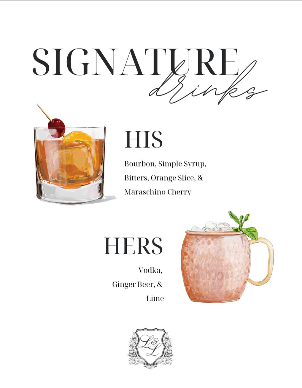 Hosting a wedding, shower, or special event? Create a personalized drink sign that perfectly matches your celebration. Each piece is 100% customizable — from the font and layout to the featured drinks, illustrations, and colors.