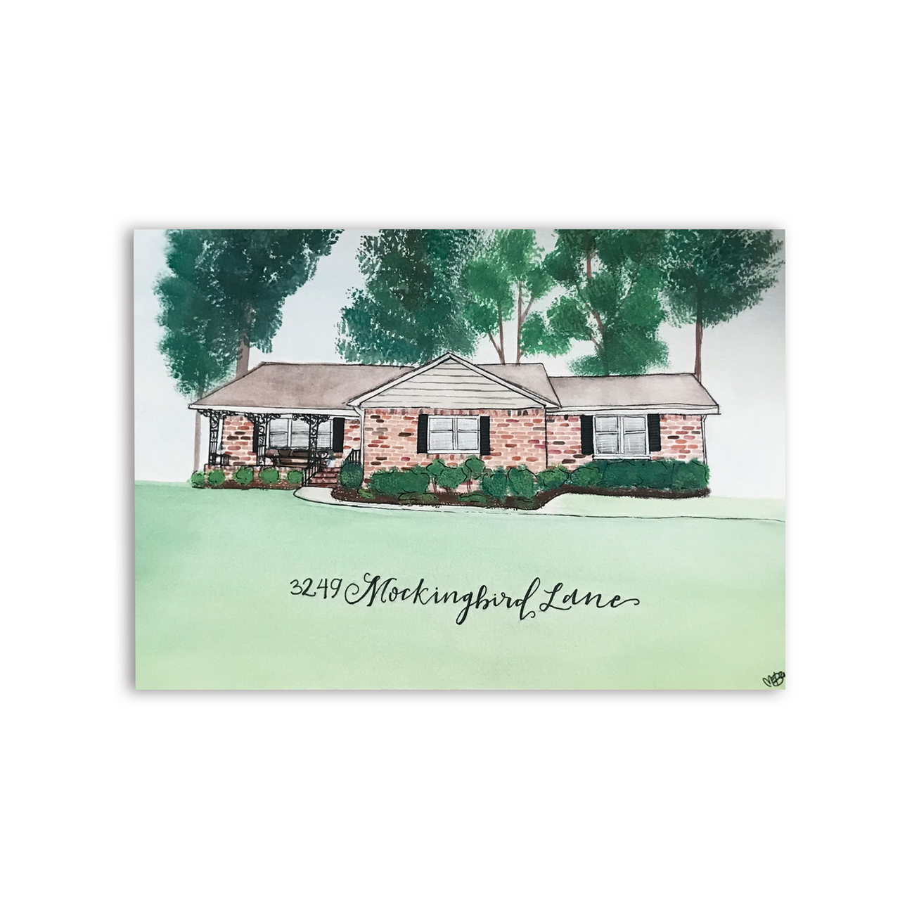 This listing is a 100% hand-painted watercolor portrait. Available with or without background and the handwritten address.