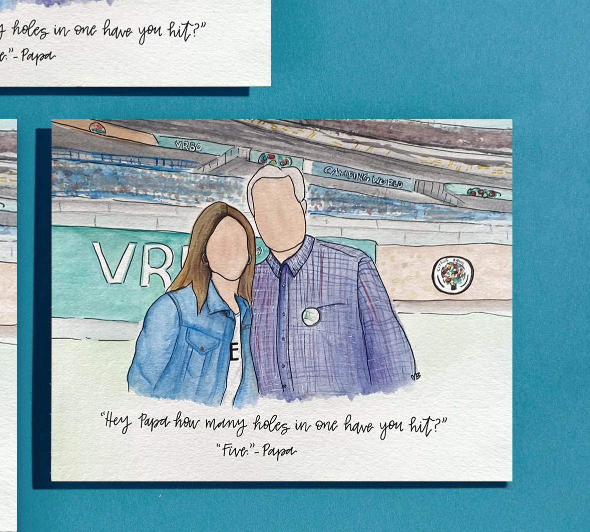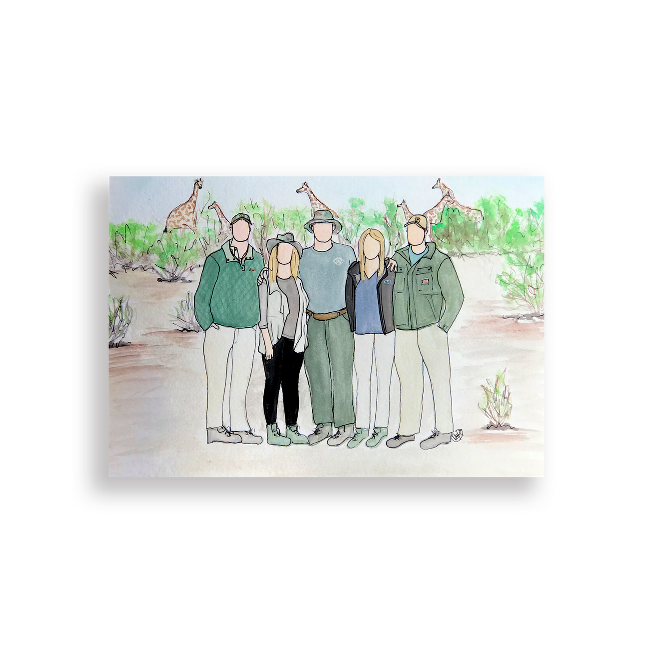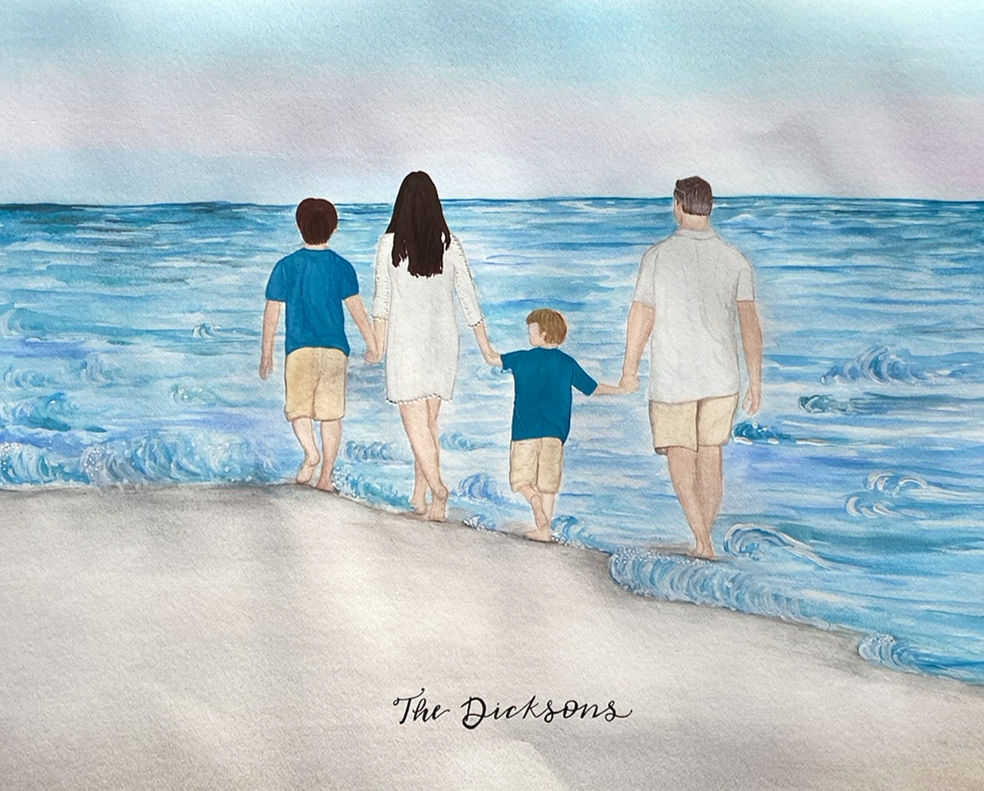 This listing is a 100% hand-painted watercolor portrait. Available with or without the handwritten family name.
